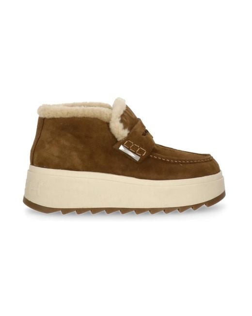 Shoppe im Sale: Der ASH Magic Loafer kombiniert ein Obermaterial aus Kalbsveloursleder mit einer erhöhten 5 cm Sohle für einen modernen, erhabenen Loafer-Look. Ideal für den alltäglichen Smart-Casual-Look, der Komfort mit modernem Stil verbindet. Hauptmerkmale: Braun | Kalbsveloursleder | Runde Spitze | Erhöhte Sohle (5 cm) | Abmessungen und Passform: Sohlenhöhe: 5 cm | Fällt größengerecht aus | Zusammensetzung und Pflege: Kalbsveloursleder Farbe: natur