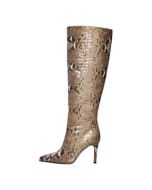 Damen Extravagante Schlangenmuster-Kniehohe Stiefel in braun
