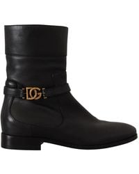 Dolce & Gabbana Damen Kalbsleder Biker Boots in schwarz