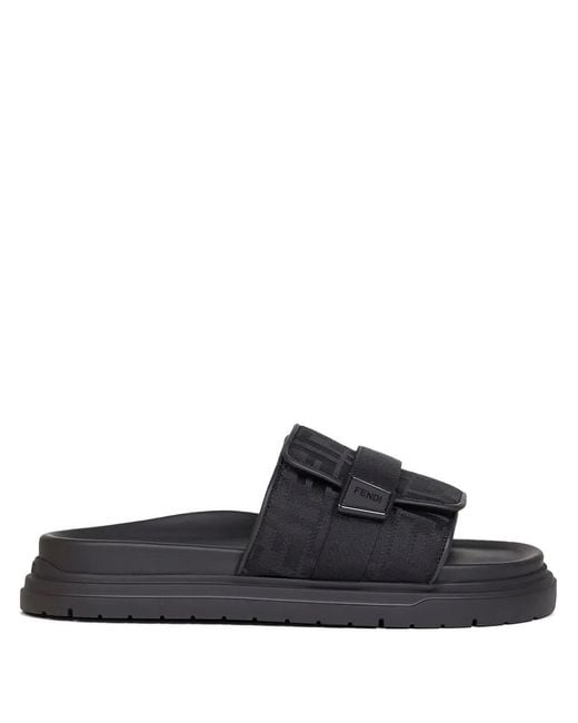 Herren Pantoletten mit Jacquard-Riemen in schwarz