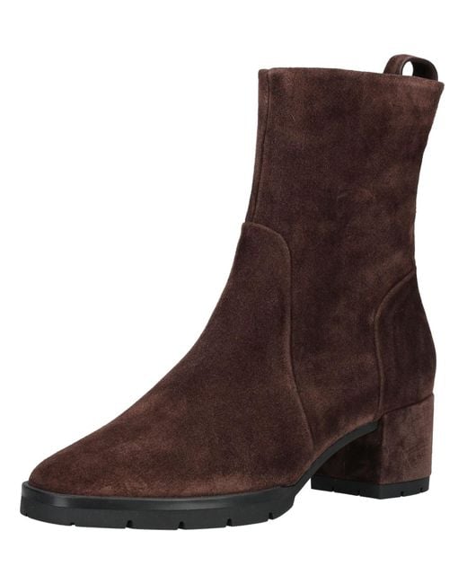 Design: Reißverschluss, Fersenlasche; Verschlussart: Reißverschluss; Absatzart: Blockabsatz; Material: Leder; Muster: Unifarben; Material: Veloursleder; Schuhspitze: Runde Kappe; Extras: Ton-in-Ton-Nähte, Velour-Optik; Absatzhöhe: Mittlerer Absatz (3-7 cm) Farbe: braun