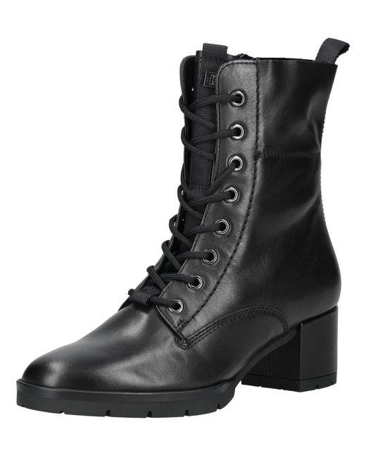 Design: Seitlicher Reißverschluss, Profilsohle, 8-Loch-Schnürung; Verschlussart: Schnürverschluss; Absatzart: Blockabsatz; Material: Leder; Muster: Unifarben; Material: Synthetik/Gummi, Glattleder; Schuhspitze: Runde Kappe; Absatzhöhe: Mittlerer Absatz (3-7 cm) Farbe: schwarz