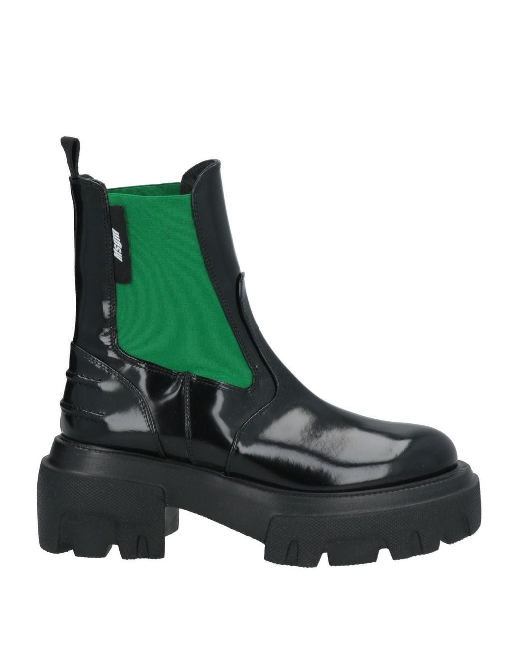 MSGM. Glänzendes Leder, Brand Logo, einfarbig, Innenfutter aus Leder, Elastische Einsätze, runde Spitze, Blockabsatz, robuste Sohle, Enthält nichttextile Teile tierischen Ursprungs., Chunky Boots. Leder, Elastische Fasern.
