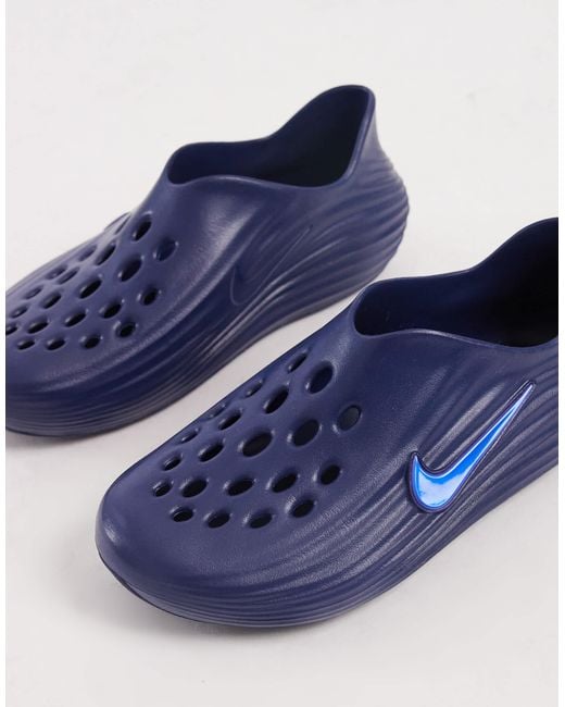 Schuhe, Stiefel & Sneaker von Nike Mit flacher Sohle Zum Überziehen Charakteristisches Nike-Logo Cut-out-Details zur Belüftung Die ReactX-Schaumstoff-Zwischensohle bietet eine weiche, federnde Dämpfung Robuste Gummisohle Strukturiertes, griffiges Profil. Farbe: blau