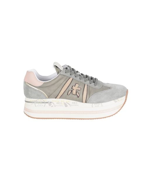 Beth Turnschuhe aus Stoff und Wildleder. Runder Punkt in Wildleder. Obermaterial aus Stoff. Verschluss mit sieben Lochern und flachen Spitzen. Stoffzunge mit eingelegtem Logo. Logo seitlich eingefugt. Lederknopf. Lederfutter. Herausnehmbare Ledersohle. Gummisohle mit Schriften. Absatzhohe: 5 cm. Zusammensetzung: Stoff und Leder. Calzata: regelmaBig. Farbe: mehrfarbig