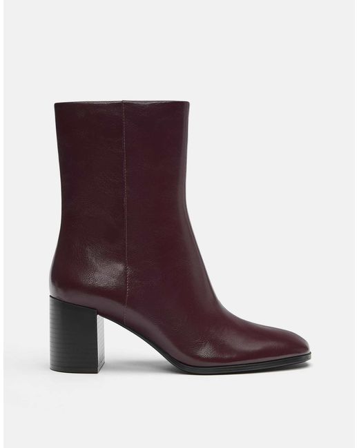 Schuhe von Pull&Bear knöchelhoch Seitlicher Reißverschluss spitze Zehenpartie Hoher Blockabsatz. Farbe: lila