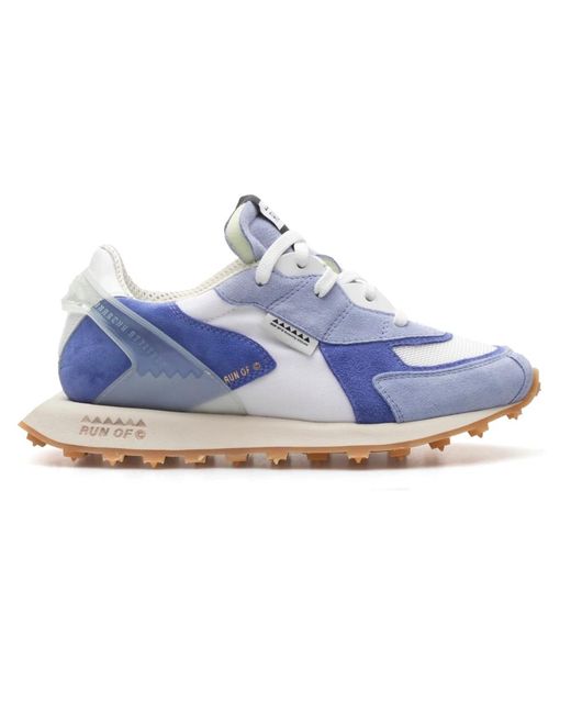 Shoppe im Sale: Sneaker in Blauer Farbe aus geteiltem Leder & WEIßEM synthetischem Stoff Gummisohle in weiß/honigfarben Baumwollschnürsenkel Hergestellt in Italien Größenangabe - eine Größe größer empfohlen