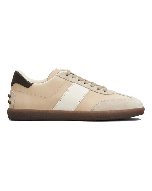 Die Tod's Tabs Sneakers sind Low-Top-Sneakers aus Wildleder, die raffinierte italienische Handwerkskunst mit der markentypischen geprägten Gummiabsatz kombinieren. Sie sind für den Alltag konzipiert und verbinden ein weiches Obermaterial aus Wildleder mit einer strapazierfähigen Gummisohle für einen bequemen, eleganten Look. Hauptmerkmale: Multicolor | Wildleder | Schnürverschluss | Gepolsterte Zunge | Gummi-Cupsohle | Low-Top-Silhouette | Runde Zehenpartie | Geprägtes Gummi-Kiesel-Detail an der Ferse | Einsätze aus Wildleder und Nubuk | Logo-Prägung | Abmessungen und Passform: Fällt größengerecht aus | Material und Pflege: Kalbsleder-Wildleder (Obermaterial) | Leder (Details/Futter) | Gummi (Sohle) Farbe: natur