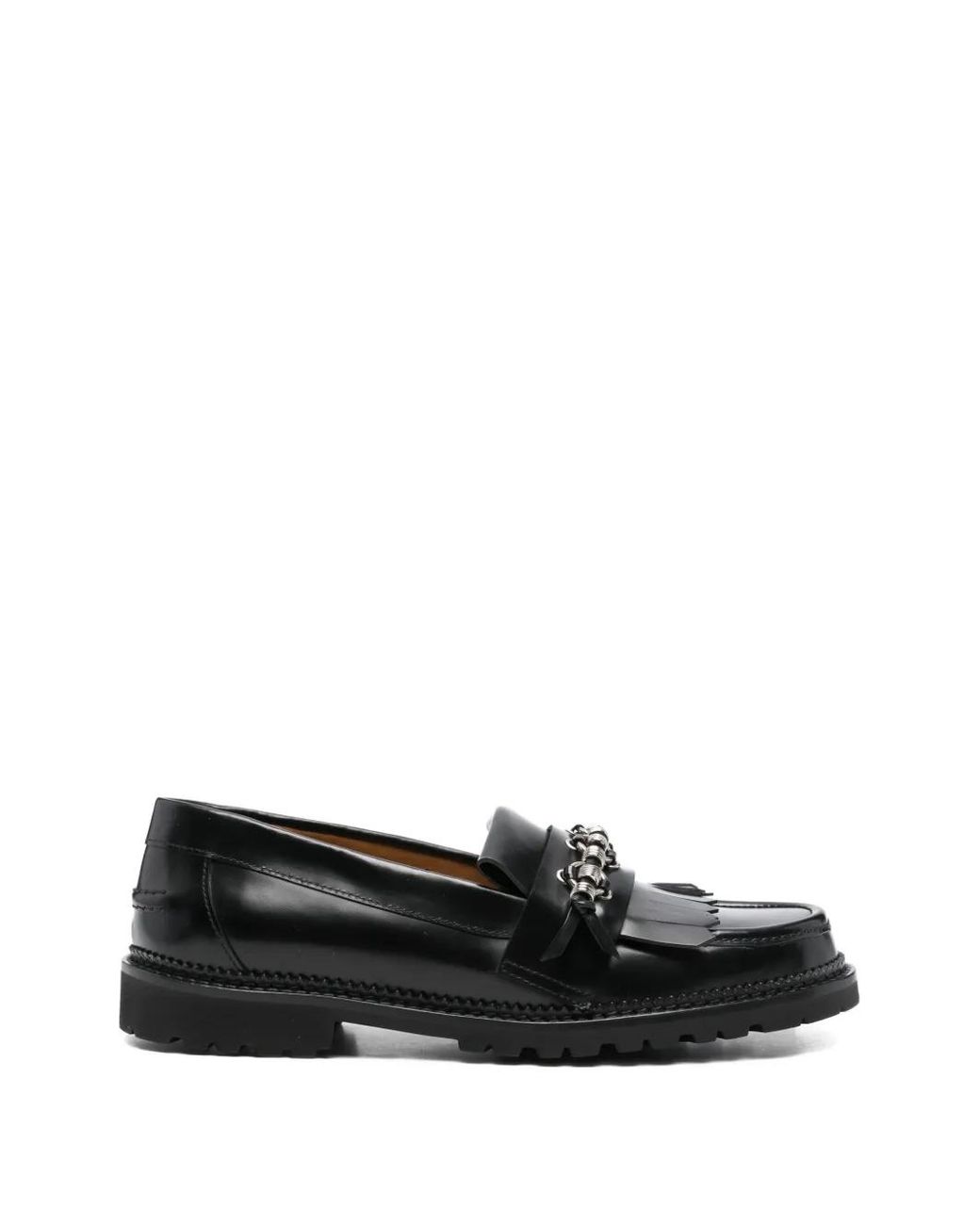 Schwarz Leder Kettendetail Fransendetail geriffelte Sohle Dieses Piece wird mit einem Staubschutzbeutel geliefert. Size: 39. Gender: Male. Material:Kalbsleder/Kalbsleder/Gummi. Farbe: schwarz