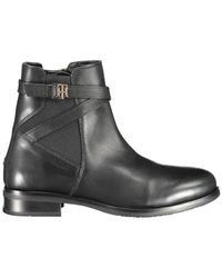 Tommy Hilfiger Damen Schwarze Leder Zipup Stiefeletten