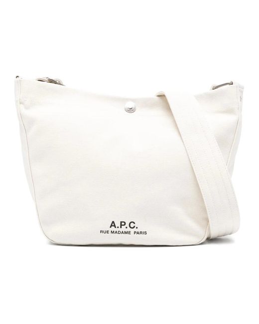 Shoppe im Sale: A.p.c. Journal Small Satchel ist eine kompakte Schultertasche aus Canvas, die für den täglichen Gebrauch entworfen wurde. Sie verfügt über einen sicheren Druckknopfverschluss und einen verstellbaren Riemen für vielseitiges Tragen. Hauptmerkmale: Beige | Baumwolle | Druckknopfverschluss | Verstellbarer Schulterriemen | Aufgesetzte Innentasche | Kleine Satchel-Silhouette | Logo-Print auf der Vorderseite | Abmessungen & Passform: Höhe 24 cm | Breite 23,6 cm | Tiefe 12 cm | Einheitsgröße | Verstellbarer Riemen zum Tragen über der Schulter oder als Umhängetasche | Material & Pflege: 100% Baumwolle Farbe: weiß
