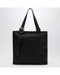 Weiter zu TheDoubleFLoewe Tasche aus schwarzem genarbtem Kalbsleder mit verstellbarem Schulterriemen und Schnalle mit Anagram-Detail, Reißverschluss oben mit Knoten-Zuglasche, geprägtem Logo vorne, flacher Innentasche und silberfarbenen Beschlägen. Farbe: schwarz