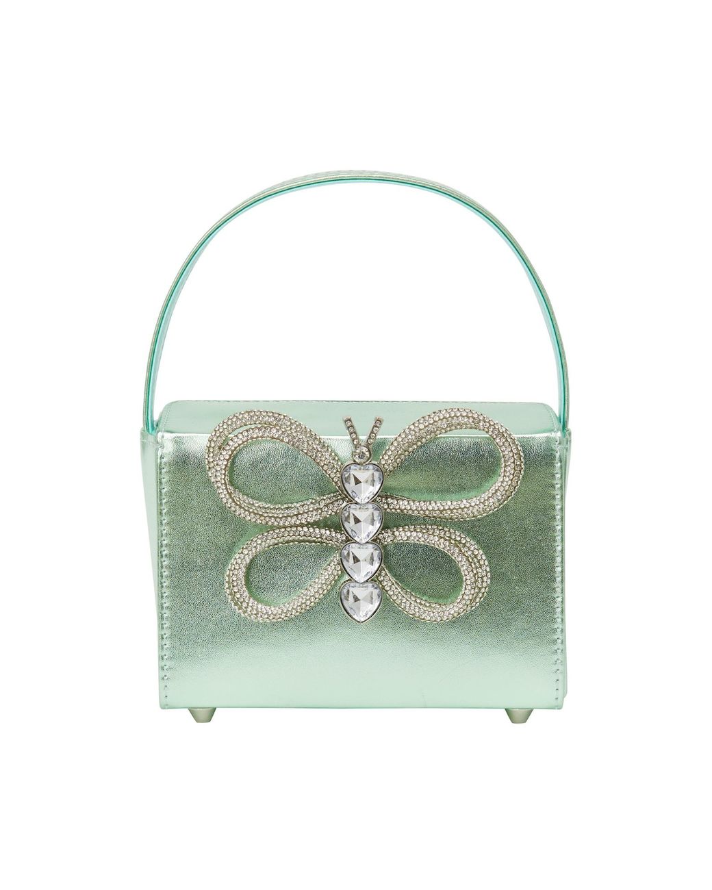 Design: Geräumiges Hauptfach; Verschlussart: Druckknopf; Material: Lederimitat; Extras: Standfüßchen, Glänzend, Applikationen; Größe Tasche: Klein; Gurt-/Henkellänge: Kurzer Trageriemen / Henkel Farbe: grün