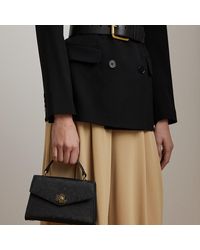 Weiter zu Ralph LaurenDie kleine Tasche Farrah mit geräumiger und dennoch raffinierter Silhouette mit abnehm- und verstellbarem Umhängeriemen ist Laurens elegante Version der Umhängetasche. Diese Version mit charakteristischem Drehverschluss wird für ein natürlich glattes Finish aus geschmeidigem Narbenleder gefertigt. Farbe: blau