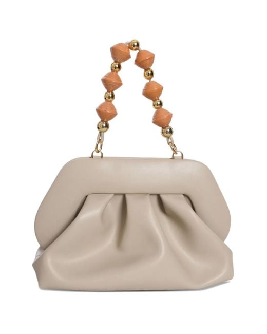 Beige wattiertes Design Henkel mit Perlen abnehmbarer Riemen goldfarbene Beschläge Size: Einheitsgröße. Gender: Female. Material:Papier.