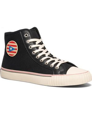 PF Flyers is an American footwear brand that utilizes vulcanized rubber to create casual footwear. At the turn of the century, BF Goodrich first harnessed the power of vulcanized rubber, and created several lines of athletic shoes, Oxfords, heels and boots, using it as the soles for his shoes. This early innovation proved incredibly comfortable, and changed the sneaker landscape at the time. At the forefront of the industry, PF Flyers grew through the 1950s and sixties into one of the most popular brands in America. Today, it remains true to its original mission of creating premium sneakers.