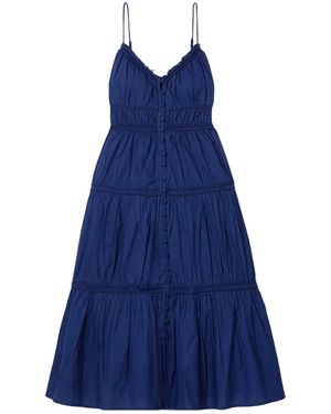 Its aesthetic fuses uptown polish with downtown urbanity, resulting in a range of timeless yet trend-driven pieces that offer a breath of fresh air to any closet. Expect color-blocked tops, lace pencil skirts, striped midi dresses, and ruffled blouses in the feminine collection that’s elevated with an edge.