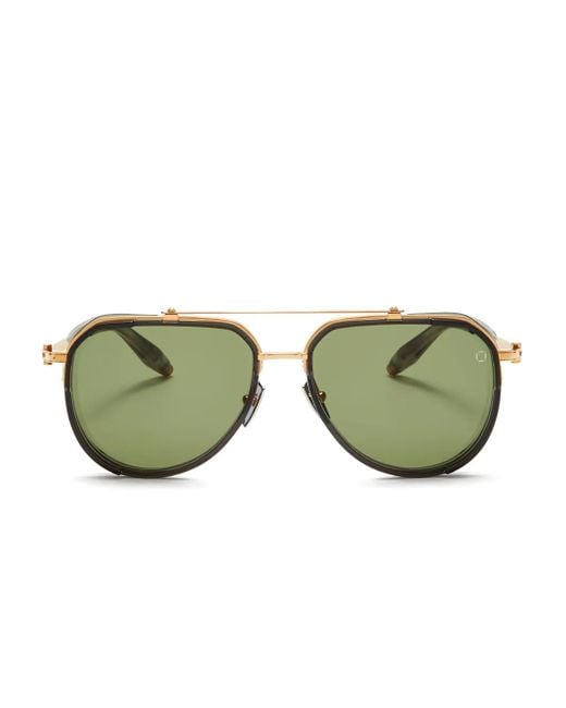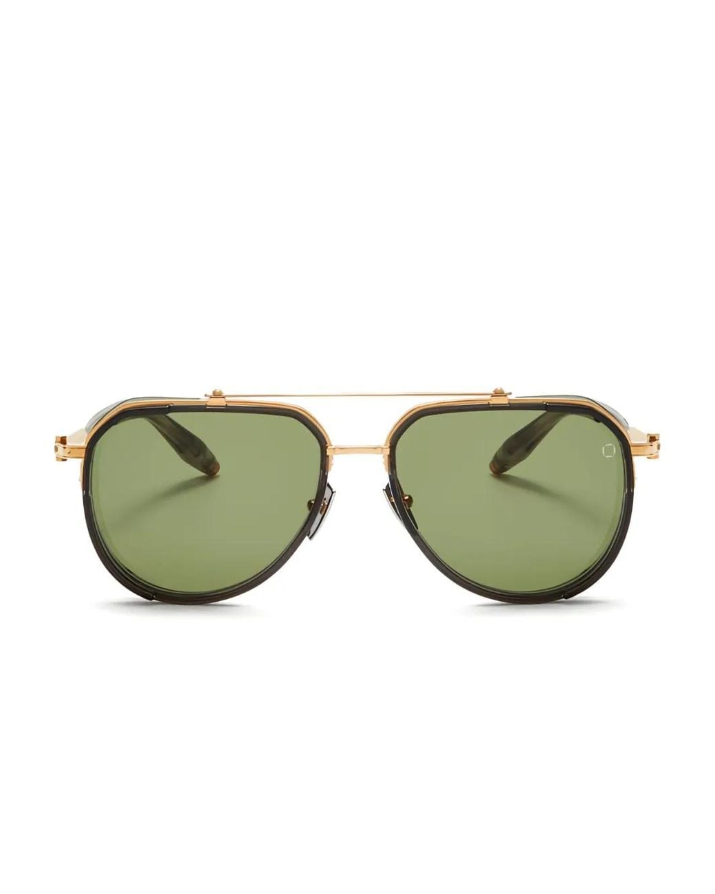 Grey pilot frame double bridge nose pads gold-tone hardware tinted lenses These glasses come with a protective case. Size: 59. Gender: Unisex. Material:Titanium. Colour: green