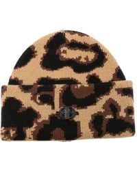 Go to FARFETCHRed ribbed knit jacquard logo turn-up Size: One Size. Gender: Female. Material:Acrylic/Wool/Polyester/Polyester. Colour: red