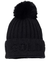 Goldbergh Women's Red Ribbed Pompom Beanie Hat