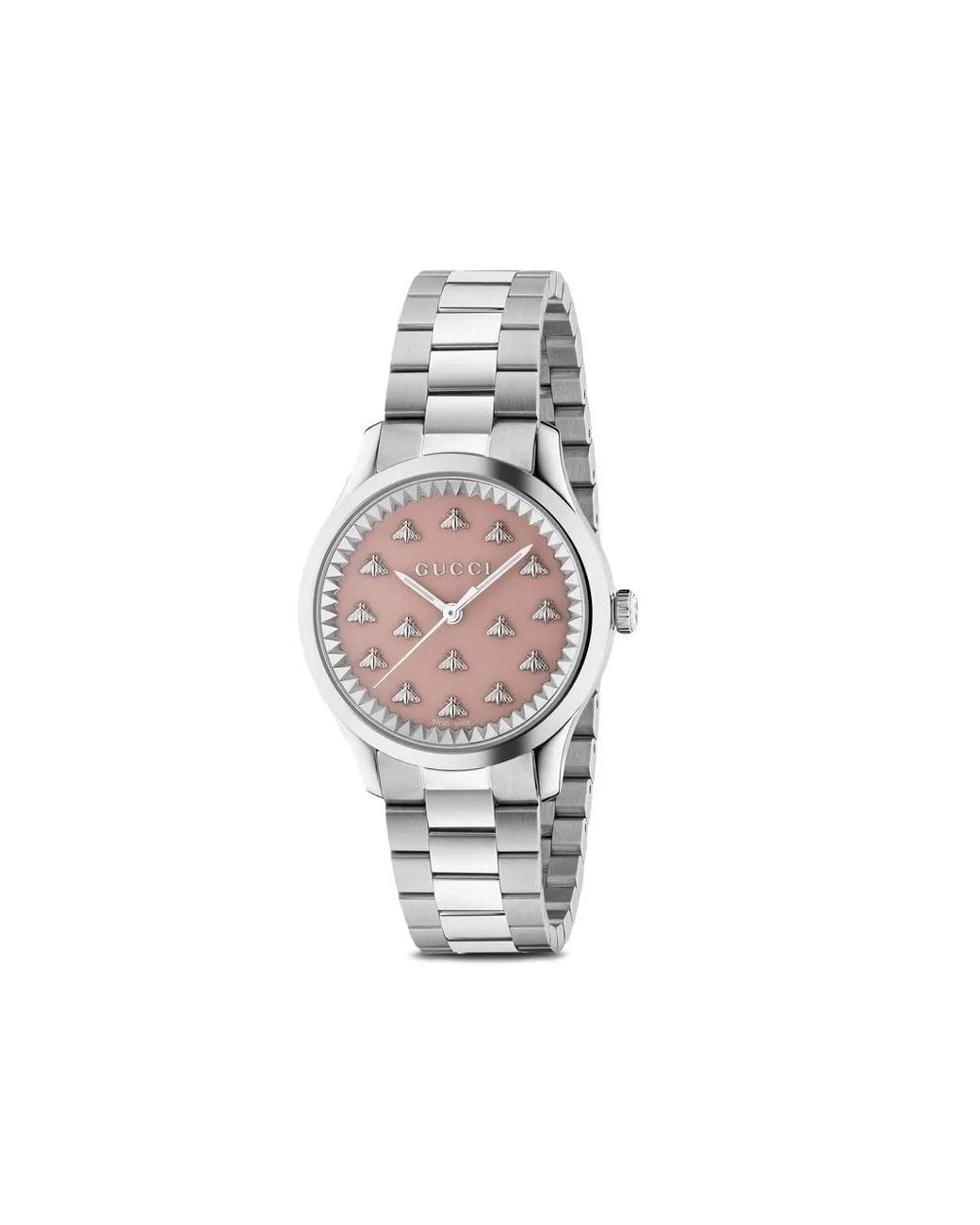 Rose pink stainless steel round face quartz movement adjustable link bracelet clasp fastening signature Bee motif baton hands screw-down crown This item comes with a standard two-year warranty from the brand. Size: One Size. Gender: Female. Material:Sapphire Glass/stainless steel.