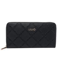 Go to FARFETCHLiu Jo black wallet, zip closure, 3 compartments, zip pocket, 12 slots, 2 open pockets, logo|100% polyester|Liu Jo black wallet, zip closure, 3 compartments, zip pocket, 12 slots, 2 open pockets, logo|100% polyester|100%