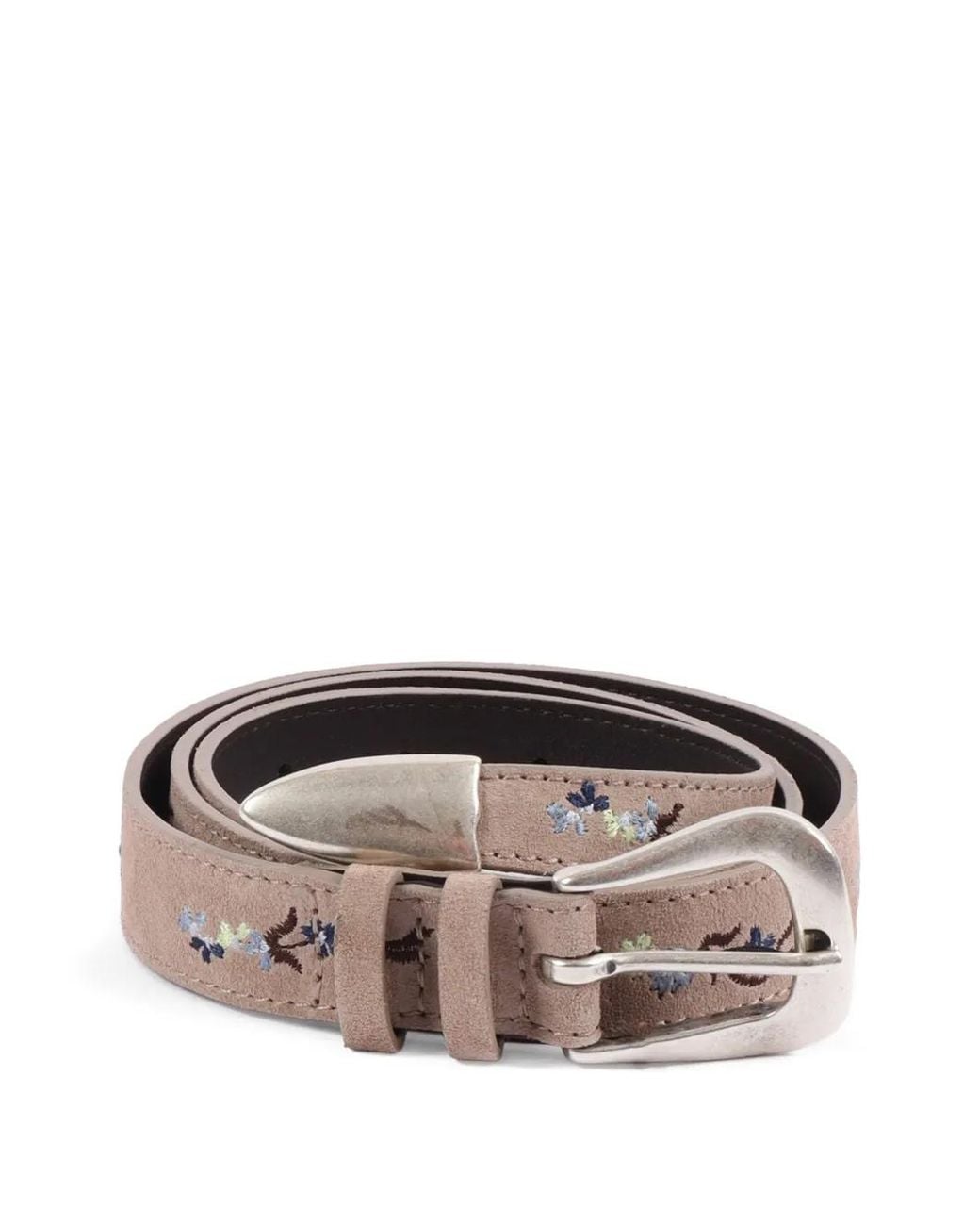 Floral Embroidered Belt - Brown