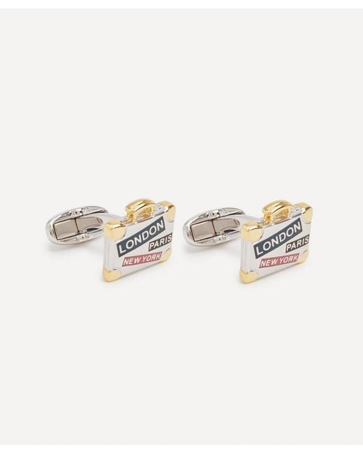 Paul Smith Paul Smith Mens Suitcase Cufflinks | Gold and Silver | Luxury Gift | Injecting a playful, yet sophisticated touch to your sharp sartorial edit, the suitcase cufflinks from Paul Smith perfectly showcase the british label's distinctive sense of humour. Meticulously crafted with a polished gold and silver-tone finish, each charming cufflink is shaped to miniature suitcase design, and is complete with enamel detailing. A simple yet stylish way to bring further character to formal dressing, they're fitted with secure logo-embossed t-bar fastenings.