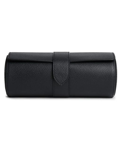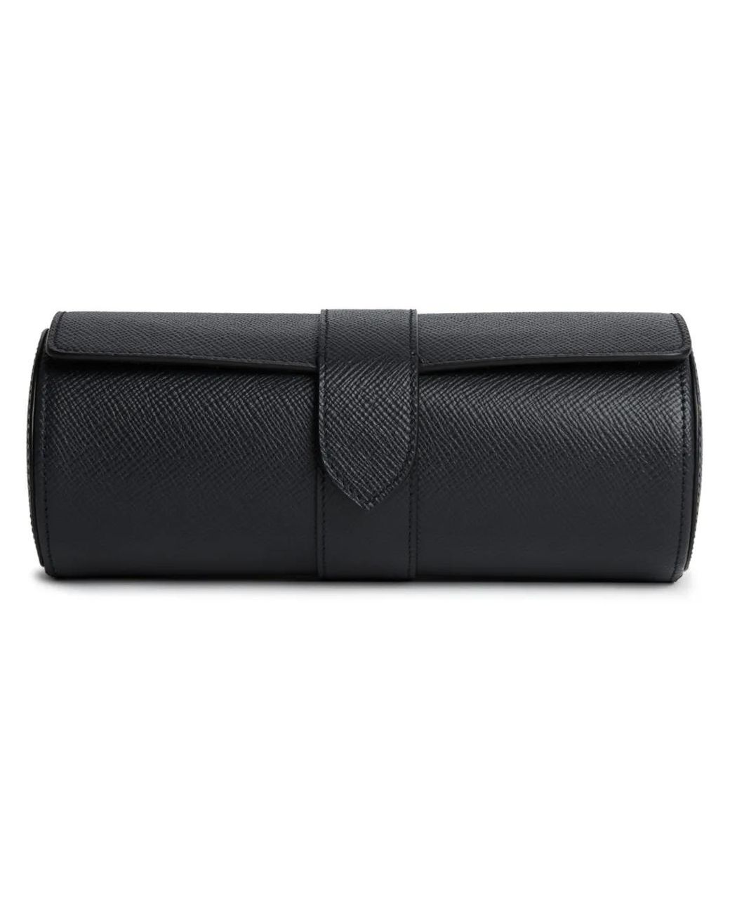 Black calf leather gold-tone logo lettering removable pads foldover top with magnetic fastening suede lining holds 3 watches Size: One Size. Gender: Unisex. Material:Calf Leather. Colour: black
