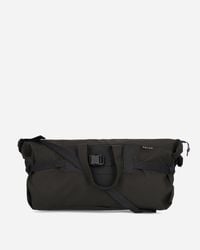 Go to SSENSELightweight and water-repellant stretch nylon taffeta messenger bag in grey. · Adjustable webbing cinch crossbody strap · Logo printed at face · Zip pocket at interior · H17 x W21 x D2.25 Supplier color: Shale brown Colour: black
