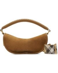 Go to BaltiniB Clip' mini suede shoulder bag with smooth leather details, tone-on-tone embossed logo, fixed handle with leather stitching, zip closure, adjustable and removable Burberry Check fabric shoulder strap.<br>W 26.5 x H 15 x