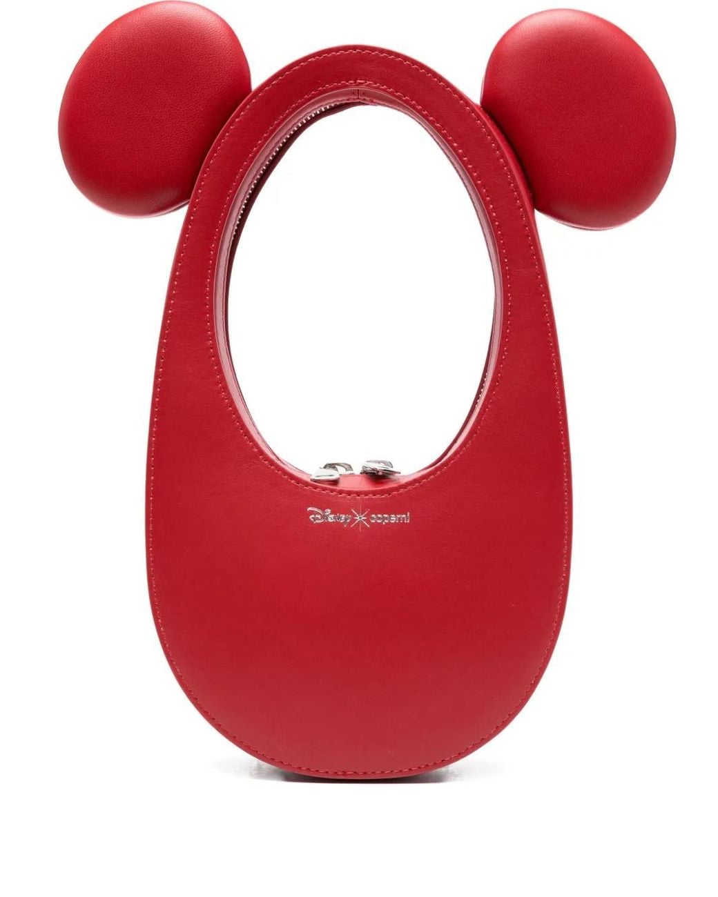 Red calf leather Mickey Mouse ear details top handle half-moon shape zip closure Size: One Size. Gender: Female. Material:Calf Leather.