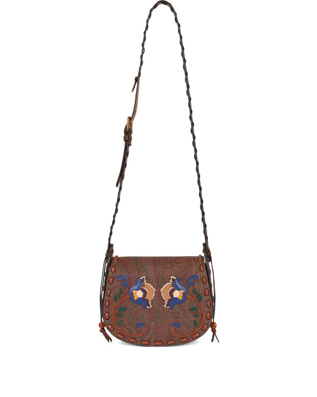 Cognac brown foldover top with magnetic fastening adjustable shoulder strap internal patch pocket paisley print Size: One Size. Gender: Female. Material:PVC/Polymethyl Methacrylate/CALFSKIN/CALFSKIN. Colour: white