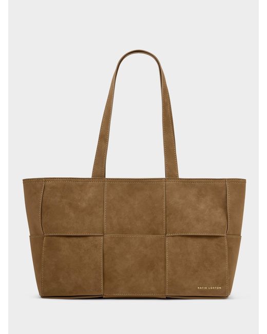 The Taya Tote Bag from Katie Loxton features a woven panel texture that adds a contemporary twist to a timeless silhouette, combining contrasting faux suede and leather. The wide shoulder strap ensures comfortable carrying, while inside, a hanging zip pocket keeps small essentials organised. Whether it's for work or weekend, Taya is a standout style for the season. 100% Suede. Colour: natural
