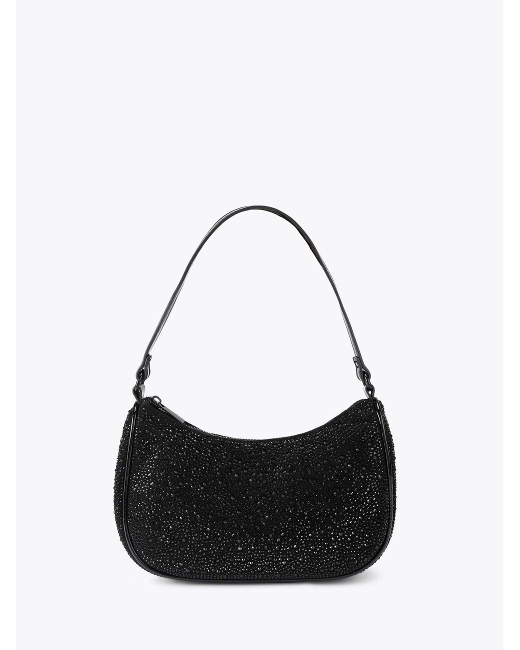 The Beau is a shoulder bag. There are black crystals across the exterior matching the black metal zip closure. 13cm (H), 24cm (L), 5cm (D). Strap length: 41cm. Short shoulder strap. Please take extra care when styling this piece with delicate fabrics. 100% Textile. Colour: black