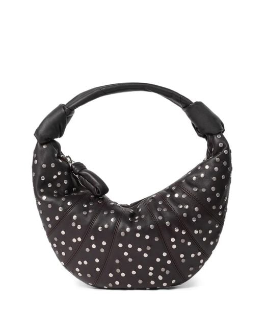 Women's Black Mini Fortune Croissant Studded Tote Bag