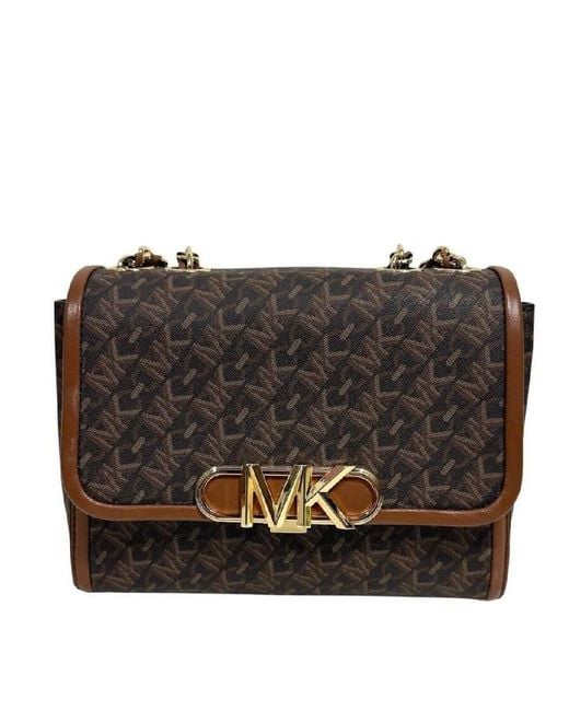 Michael Kors Ladies Shoulder Bag. SKU: 30H3G7PS6B-227. Color: Brown. Michael Kors Convertible Chain Crossbody Bag. This bag features the Empire logo, with a versatile design that can be worn as a crossbody or shoulder bag. It has a shiny front MK logo, a flap with a push-lock closure, gold-tone hardware. exterior includes a back slip pocket, while the interior offers both zip and slip. 80% PVC, 16% Polyester, 4% Cotton. Made in Vietnam. Colour: black
