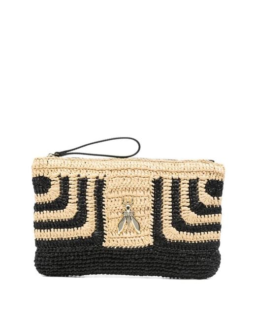 Black raffia construction patterned silver-tone logo detail wrist strap zip fastening This piece comes complete with a protective dust bag. Size: One Size. Gender: Female. Material:Raffia/Calf Leather. Colour: black