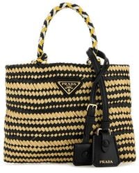 Go to JomashopPrada Ladies Tote. SKU: 1BG4222C2T_F0018. Color: Naturale. Prada Raffia Handbag. 100% Raffia. Colour: metallic