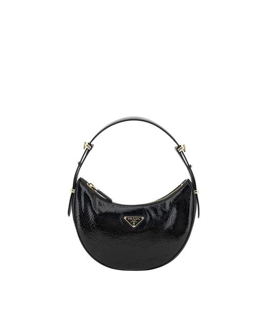Prada Ladies Shoulder Bag. SKU: 1BC194VOOO2DNT F0002. Size: W 22. 5 x H 18. 5 x D 6 cm. Prada Shoulder Bag. The leather shoulder bag by prada combines essentiality and character thanks to a patent leather design with an elegant shiny effect. featuring a top zipper closure and an adjustable rigid flat handle, it offers a practical and well-organized interior compartment. completing the design is the iconic triangular enamelled plaque on the front, an instantly recognizable symbol of prada style. Composition: 100% % Calf Leather Bos Taurus Colour: black