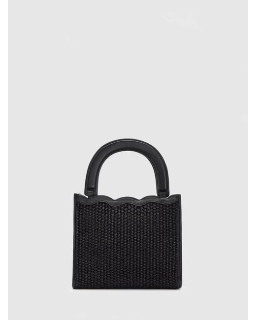 Hold me. Shop the Emma Mini Bag from Reformation, a mini bag with a top handle and scalloped trim. Reformation Emma Mini Bag Black Raffia Colour: black