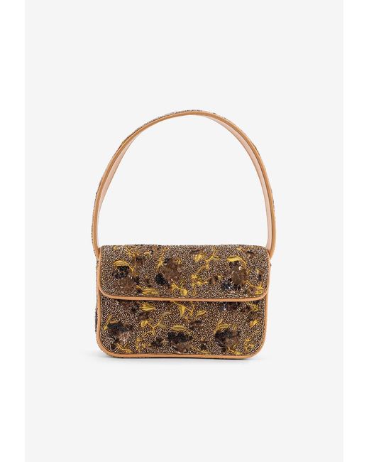Material: 100% rayon. Flap fastening. All-over beads. One top handle. Internal logo label. One internal compartment. One internal pocket. This is an evening bag Colour: white