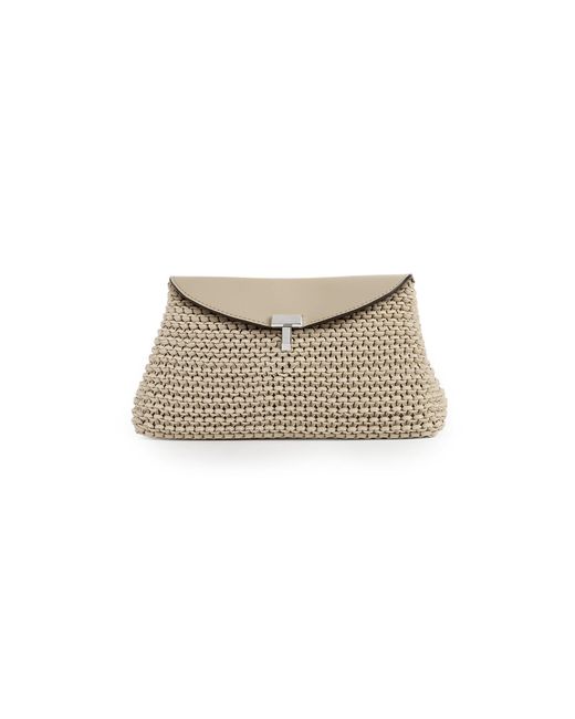 Women's Natural Mini T-Lock Woven-Leather Clutch