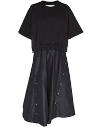Go to FARFETCHHeather grey panelled design crew neck three-quarter length sleeves press stud-fastening side vents Size: S. Gender: Female. Material:Cotton. Colour: blue
