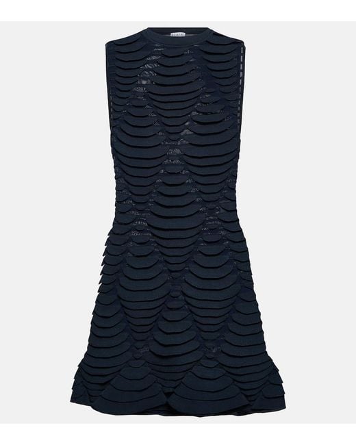 Ribbed-Knit Wool-Blend Minidress - Grey