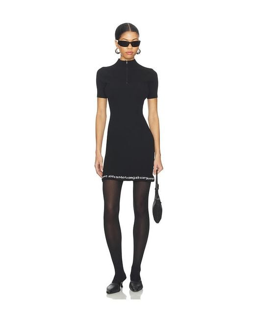 Alexander Wang Logo Ribbed Dress in Black. Size L. Also in M, S, XS. Alexander Wang Logo Ribbed Dress in Black. Size M, S, XS. 88% polyamide 12% elastane. Made in China. Dry clean only. Unlined. Zip up closure. Ruffled hem with printed logo. Ribbed. AWAR-WD78. 4KC1266045. Alexander Wang adds measured depth to his signature tough-sexy pieces using a sultry scarlet and feminine blush alongside his favorite black and grey hues. Expect luxe hybrids of your favorite outerwear as well as layers, chunky knits, and sleek satins in this collection.