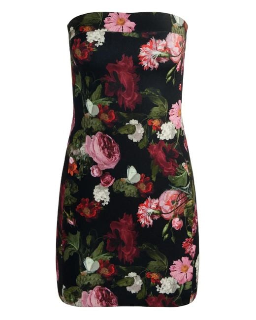 Black floral print strapless mini length straight hem Size: 0. Gender: Female. Material:Recycled Polyester/Polyester/Elastane.