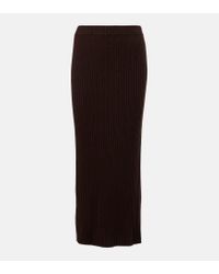 Go to FARFETCHCoffee brown organic cashmere knitted construction brushed finish high-waisted elasticated waistband unlined A-line straight hem maxi Size: XS. Gender: Female. Material:Organic Cashmere. Colour: black