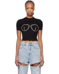 Go to REVOLVEAREA Bustier T-Shirt in Black. Size S. Also in XS. AREA Bustier T-Shirt in Black. Size XS. 65% rayon 30% nylon 5% elastane. Made in China. Dry clean only. Halterneck button loop closure.