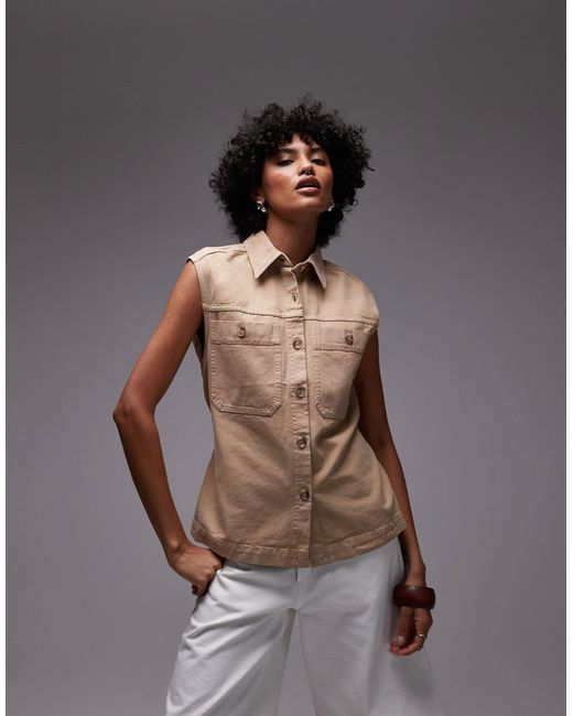 Tops by Arket Spread collar Button placket Sleeveless style Chest pockets Tie waist Oversized fit.